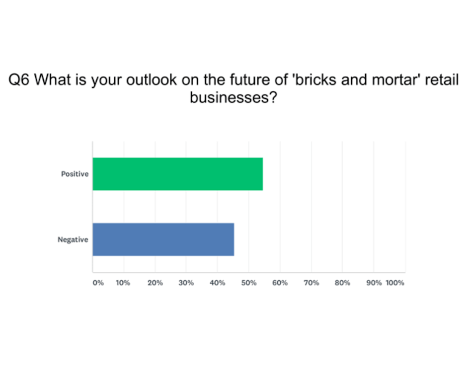 A question to separate the optimists from the pessimists, respondents were asked to give their outlook on retail businesses with physical premises, also known as ‘bricks and mortar’ businesses.